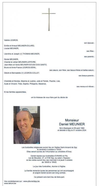 L'ensemble de l'association Badmintennis tient à exprimer son soutien à Chantal Meunier dans cette épreuve difficile. Nous nous associons à sa douleur et à celle de toute sa famille suite à la disparition de son frère Daniel. Daniel, classé à la 128e place, avait participé avec passion au Petit Tournoi des Simples en 2019 ainsi qu'aux Simples Vétérans en 2023. Nos pensées les plus sincères accompagnent Chantal Meunier, ainsi que Yohan, Maxence et Sophie Lefevre, en ces moments de deuil.